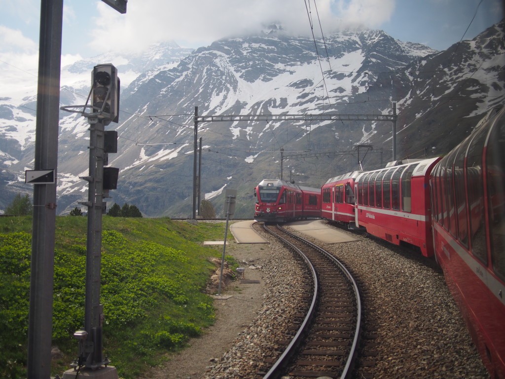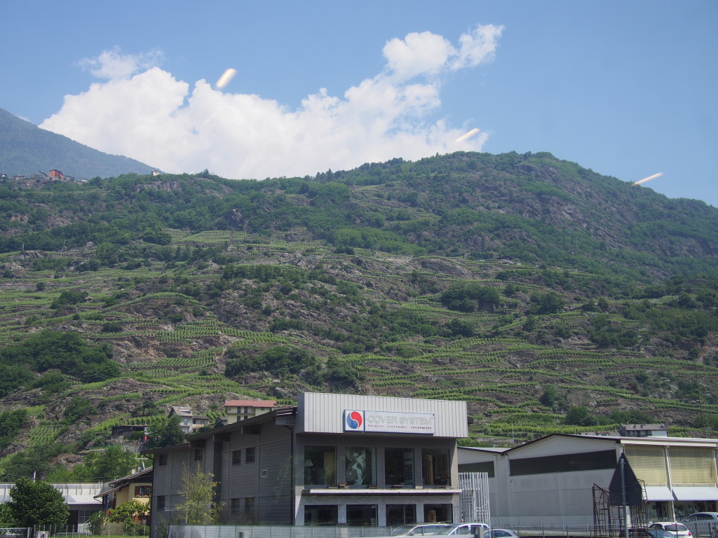 The scenery from Milan to Tirano was beautiful. For most of the way we were riding along Lake Como and surrounded by mountains. Unfortunately, it was a bit hazy so we didn’t get a great view of the hillsides but you could pick out olive groves and vineyards.